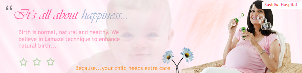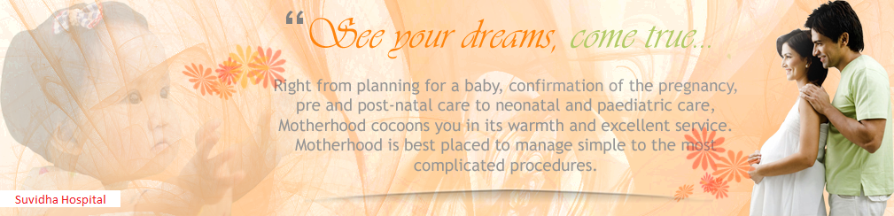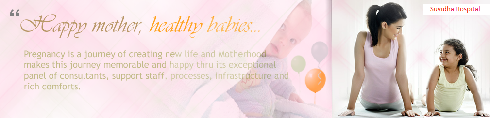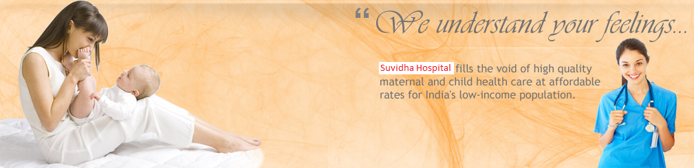 The Mother and Child care facilities at Suvidha Hospital are exemplary. Our well qualified medical professionals and trained nursing staff promote an atmosphere of family-centered care. We provide families with personalised maternity counseling and a mother�s lounge to make childbirth comfortable and memorable.